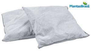 Travesseiro absorvente para óleos e derivados de petróleo fabricados em fibra de polipropileno apresentando alto poder de absorção.